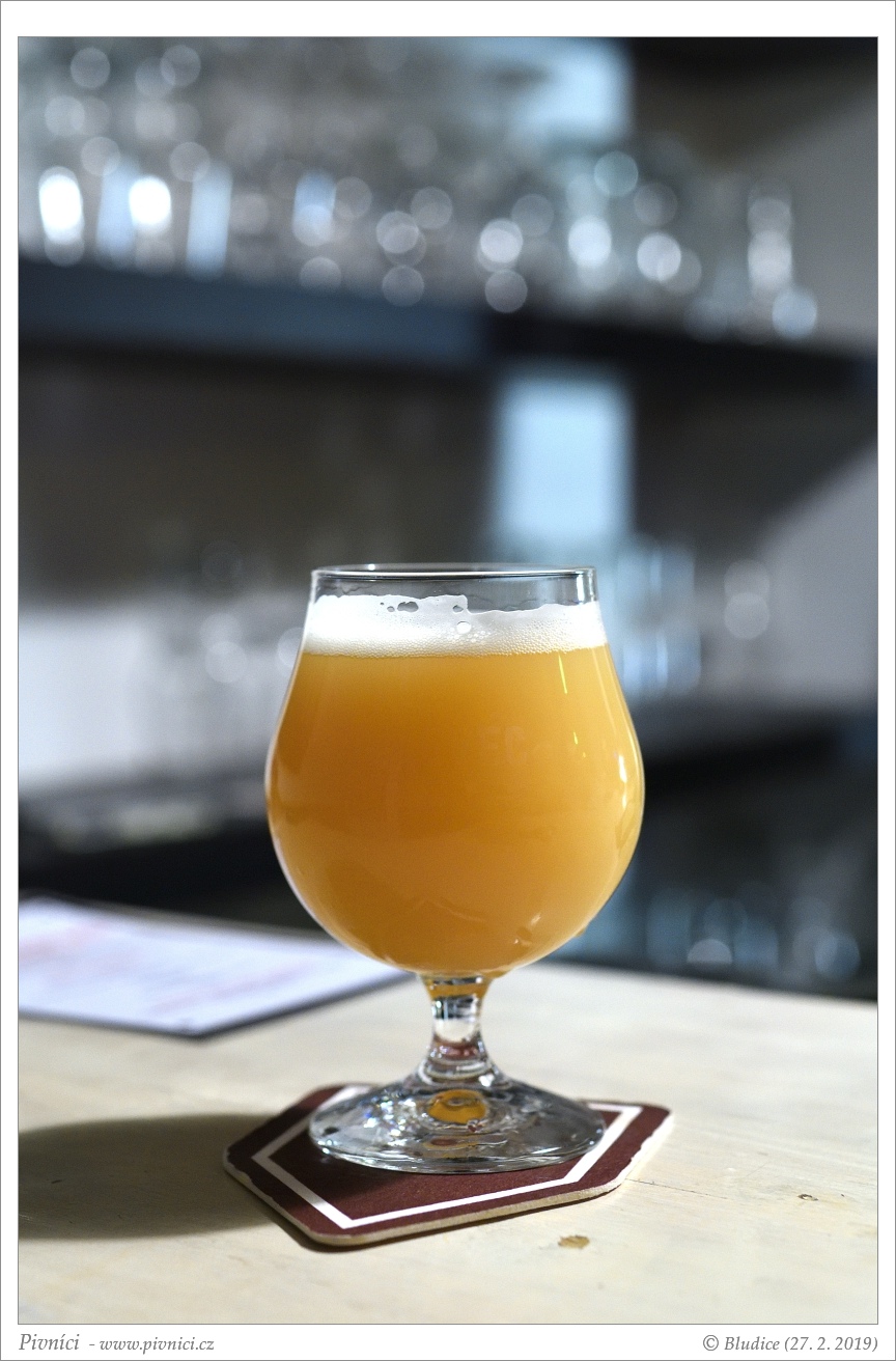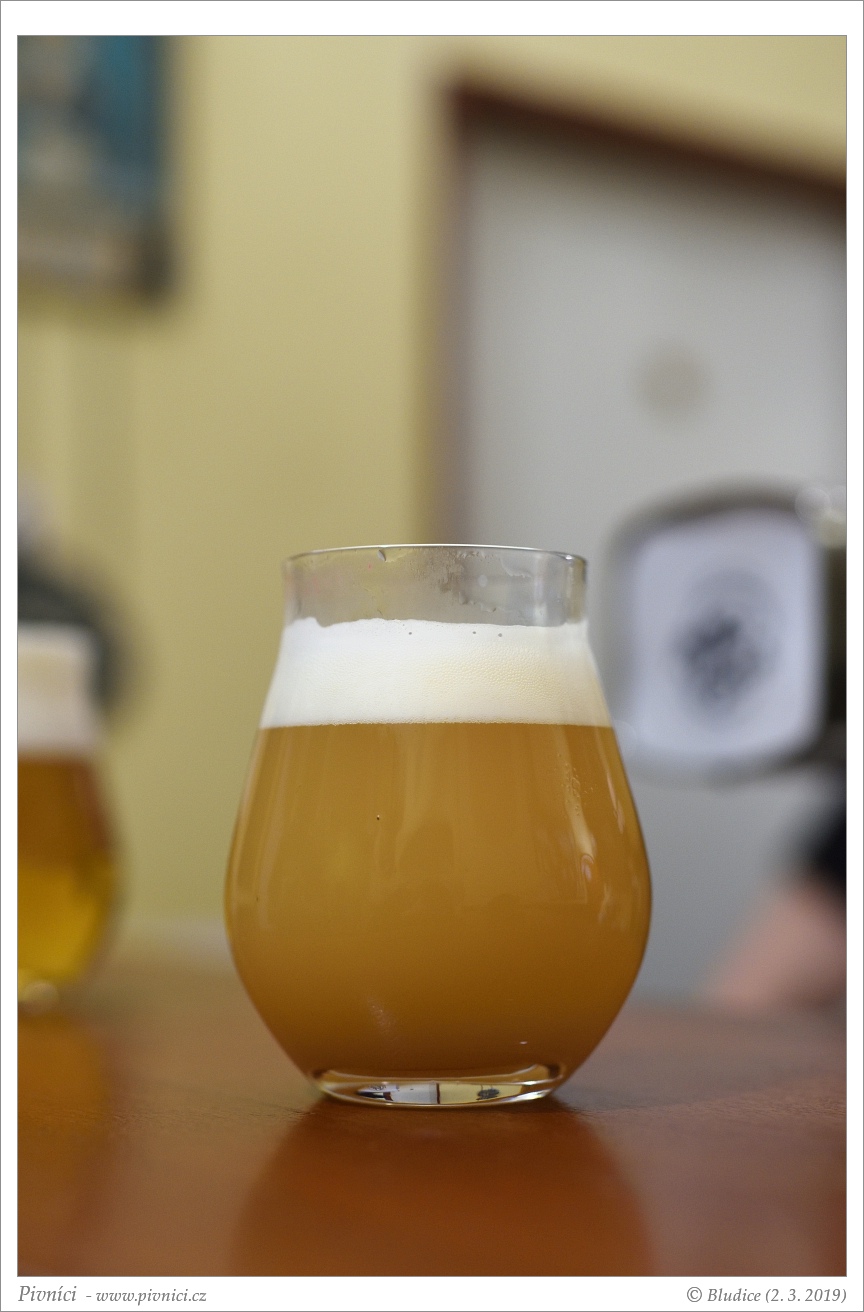 Zlatá barva, velmi zakalené. Pěkná světlá pěna, dobře drží.Vůně (4 - výborné):