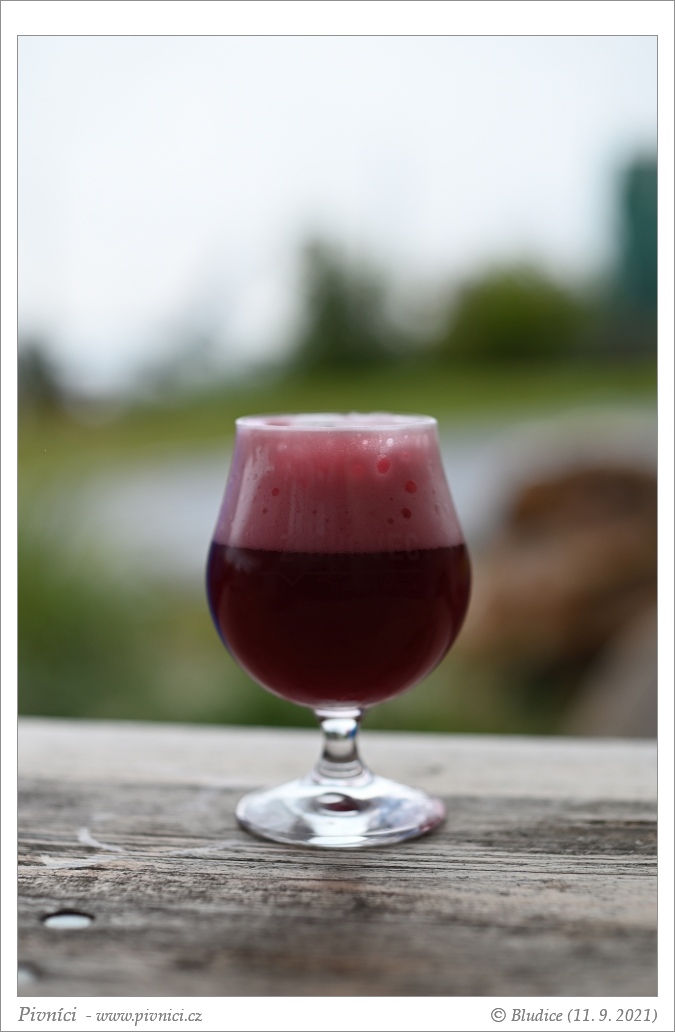 Barva rubínová, silně zakalené. Pěkná hustá stabilní pěna tmavě růžové barvy.Vůně (3 - dobré):