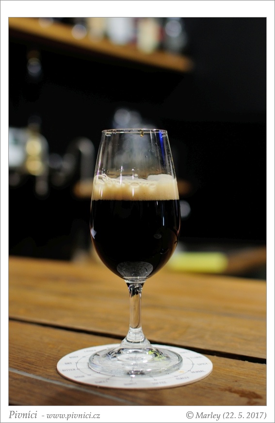 Temně mahagonová barva, čiré, pěkná béžová pěna, velmi dobře drží.Vůně (3,5 - velmi dobré):