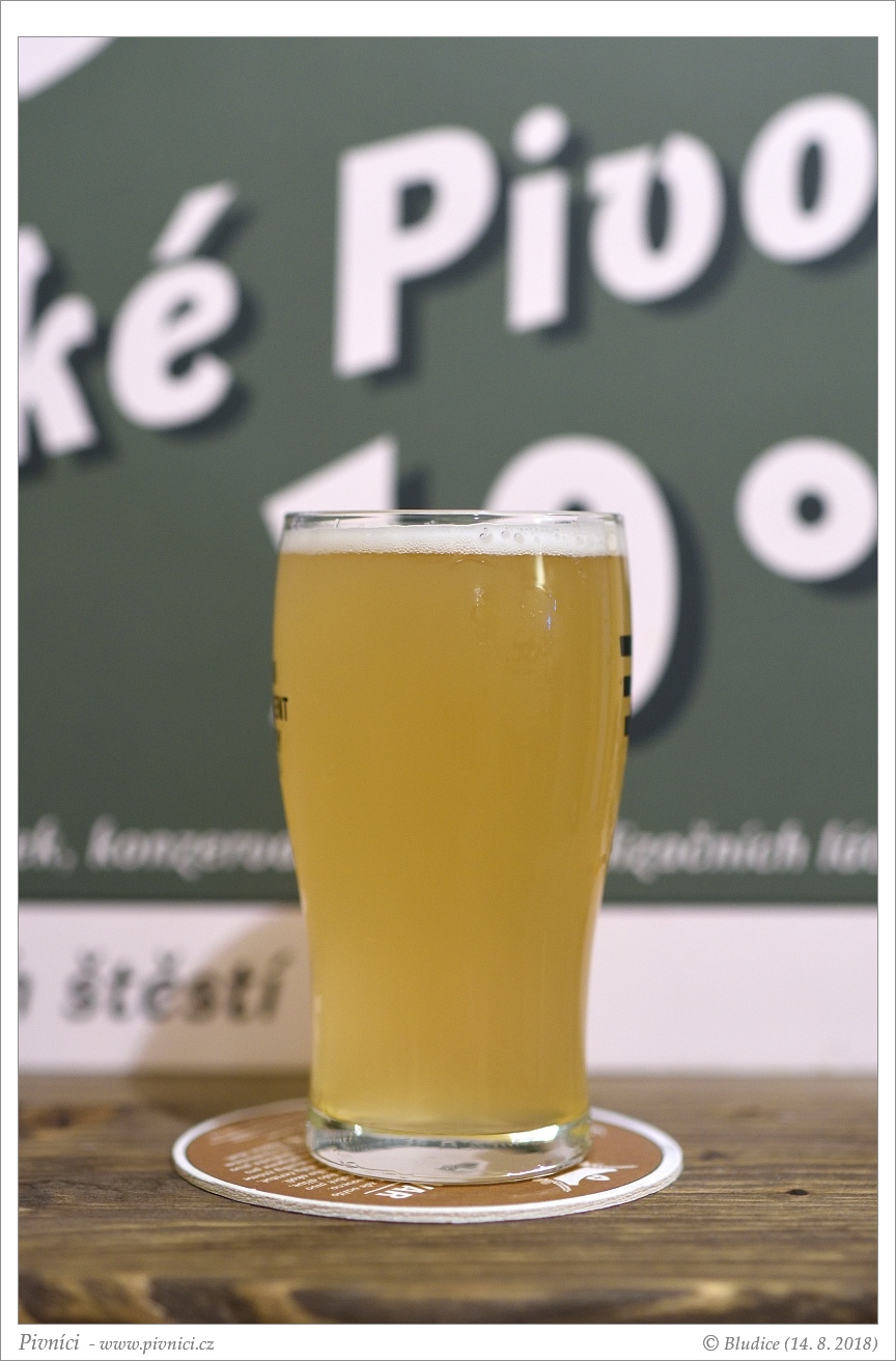 Zlatá barva, lehce zakalené. Pěkná světlá pěna, dobře drží.Vůně (3 - dobré):