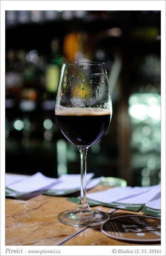 Ebenová barva, nezdá se zakalené, slušná nižší béžová pěna, dobře drží.Vůně (4 - výborné):