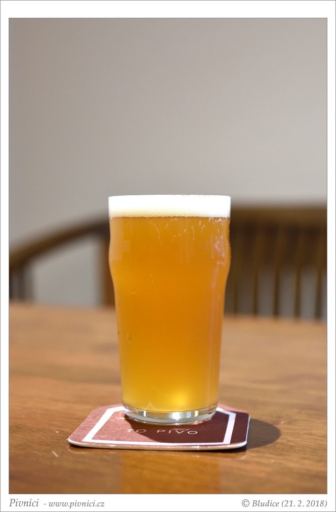 Zlatá barva, více zakalené. Pěkná světlá pěna, slušně drží.Vůně (4 - výborné):