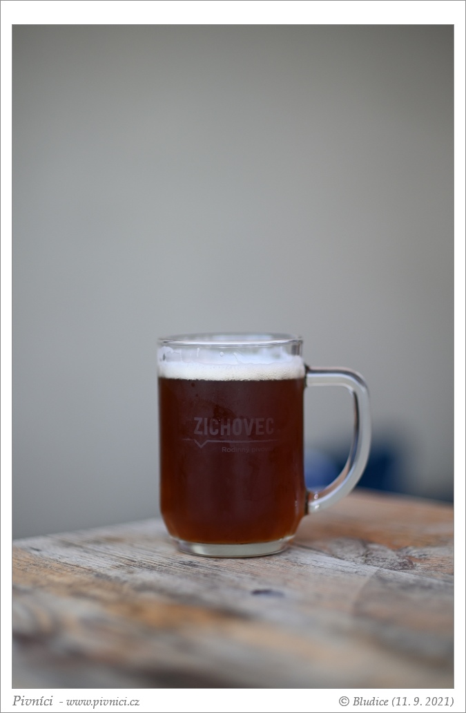 Tmavší měděná barva, lehce až středně zakalené. Slušná světlá pěna, celkem drží.Vůně (3 - dobré):