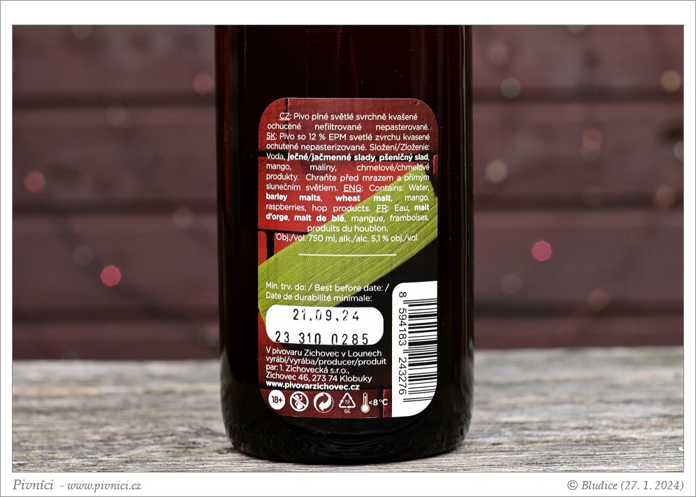 Chutný svěží kyseláč, výborně se popíjí.Minimální trvanlivost: 4. listopadu 2021