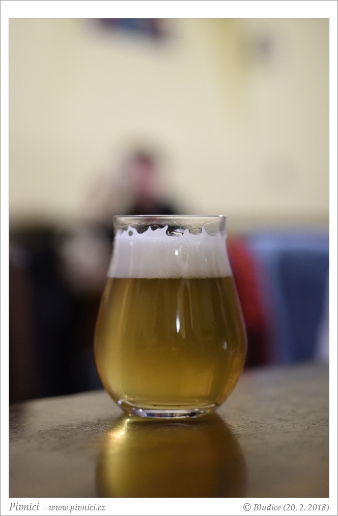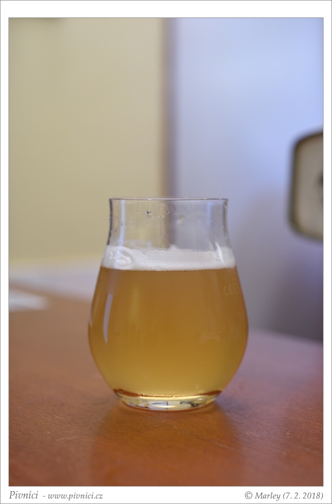 Barva zlatá, lehce zakalené. Poměrně stabilní pěna.Vůně (3 - dobré):