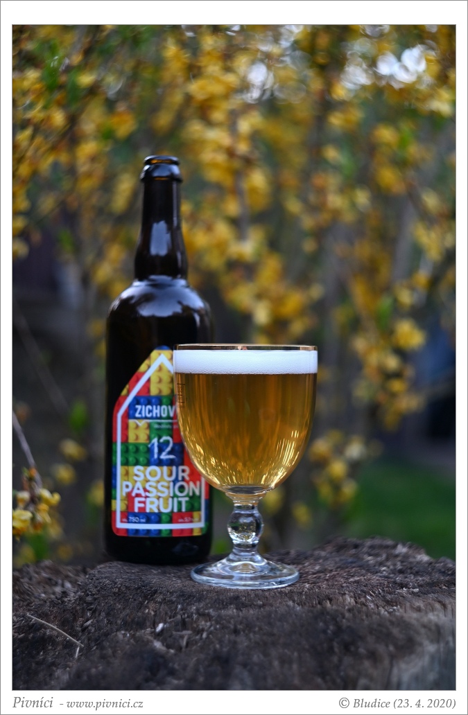 Vůně nakyslá, tropického ovoce (marakuja), trochu pecičková a obilná.Chuť (4 - výborné):