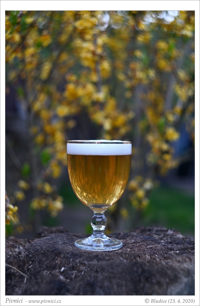 Zlatá barva, prakticky čiré. Pěkná světlá pěna, dobře drží.Vůně (4 - výborné):