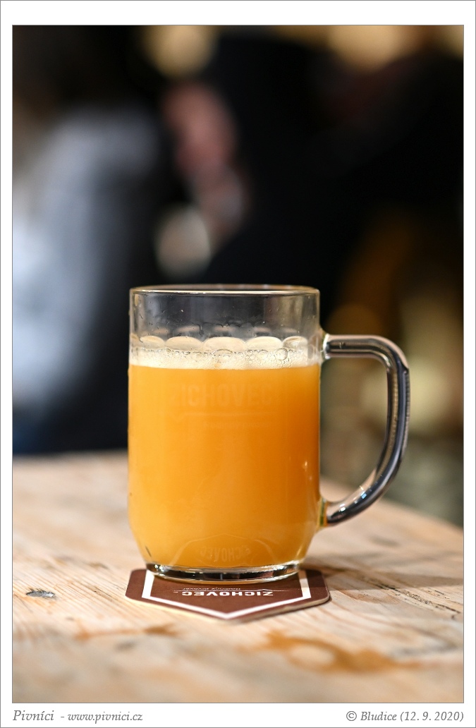 Zlatá barva, velmi zakalené. Pěkná světlá pěna, dobře drží.Vůně (3,5 - velmi dobré):