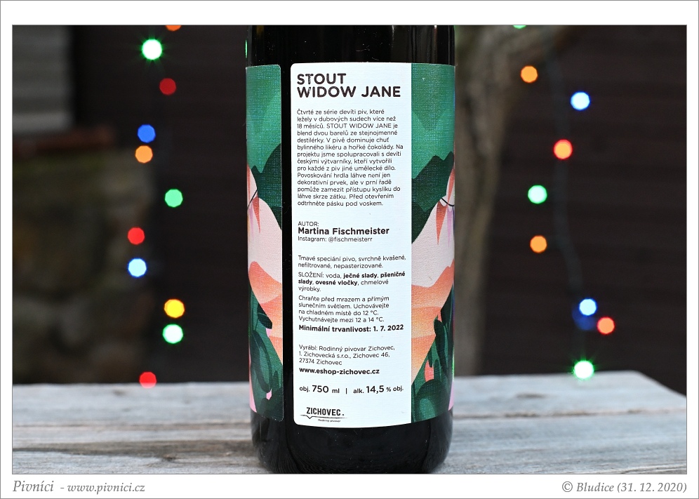 zrálo 18 měsíců v sudu po bourbonu Widow Jane, v láhvi blend ze dvou sudů