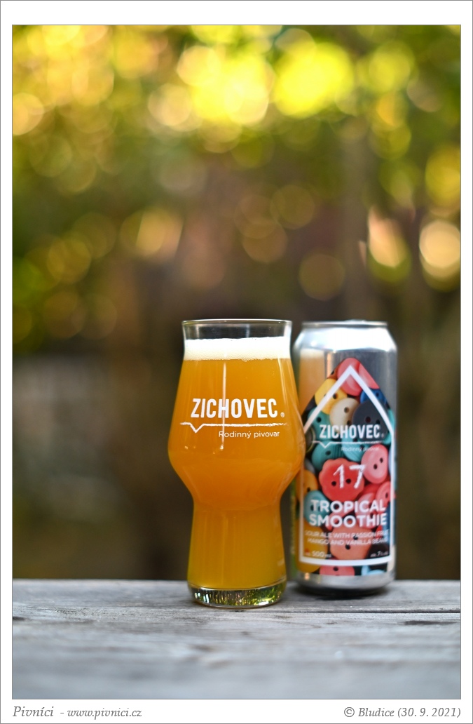Zlatá až světle oranžová barva, více zakalené. Slušná světlá pěna, ale brzy mizí (kvůli množství ovoce).Vůně (3,5 - velmi dobré):