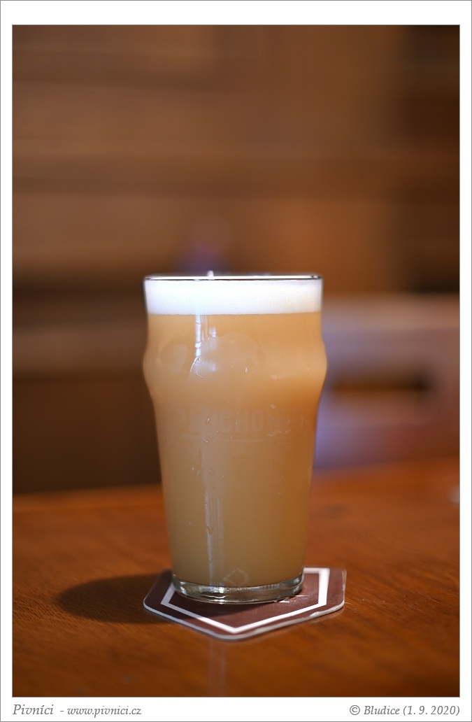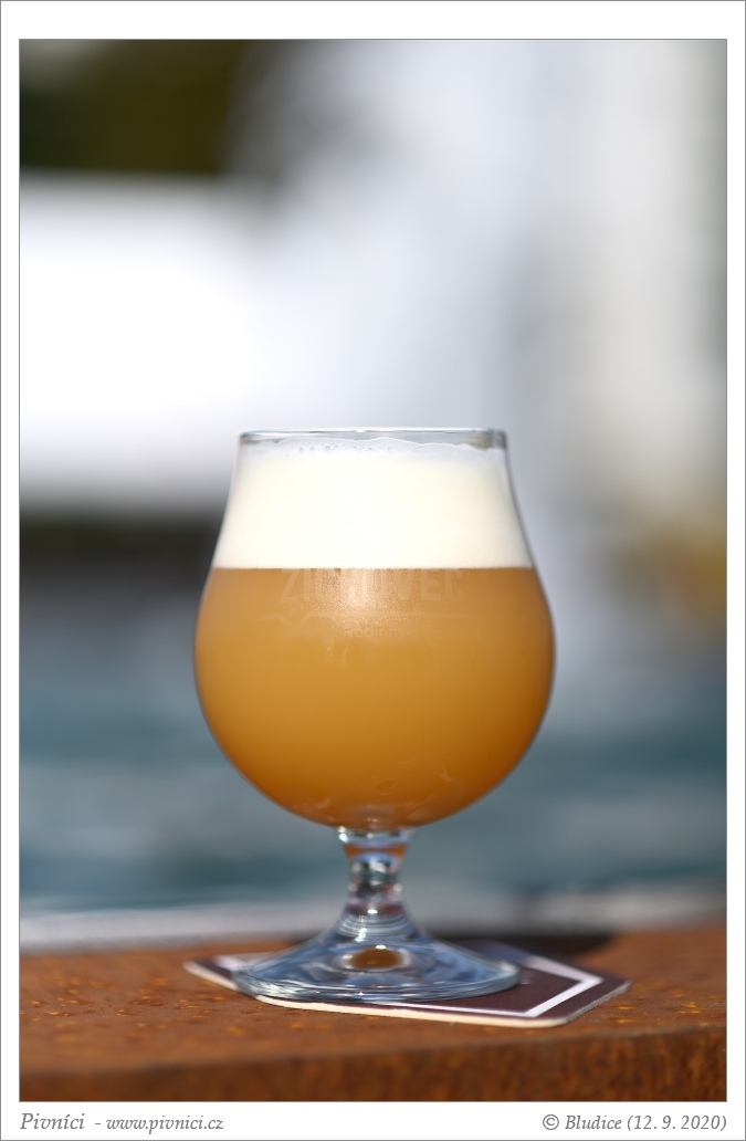 Zlatá barva, velmi zakalené. Pěkná světlá pěna, slušně drží.Vůně (3,5 - velmi dobré):
