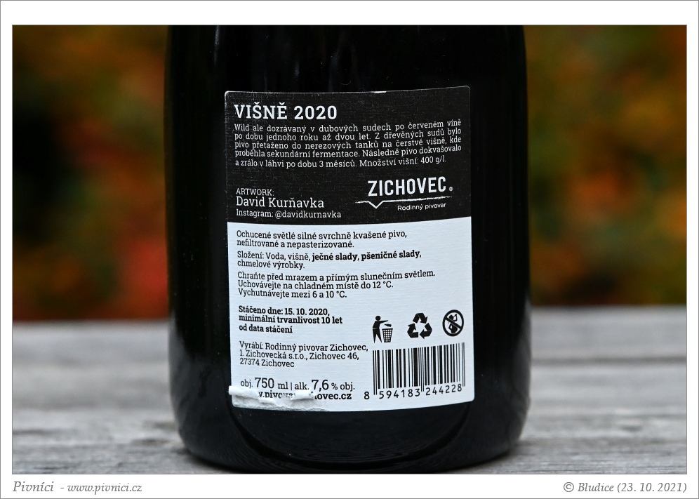 zrálo rok až dva v sudech po červeném víně, následně přidány višně v množství 400 gramů na litr piva