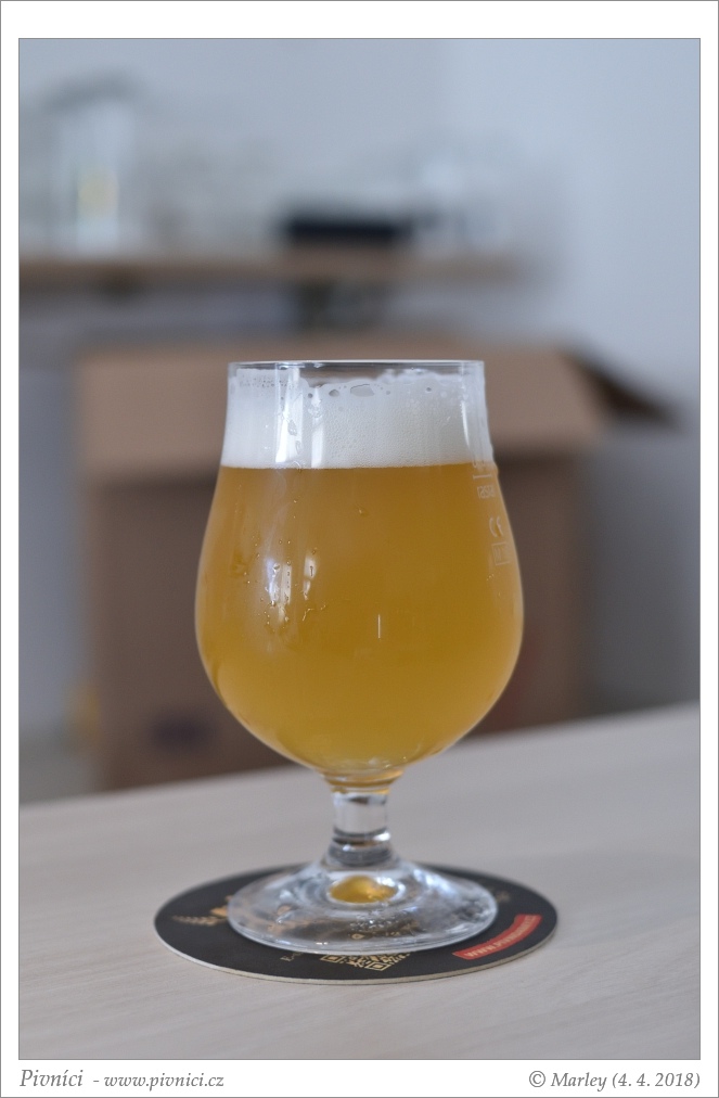 Zlatá barva, středně až více zakalené. Pěkná světlá, dobře drží.Vůně (3 - dobré):