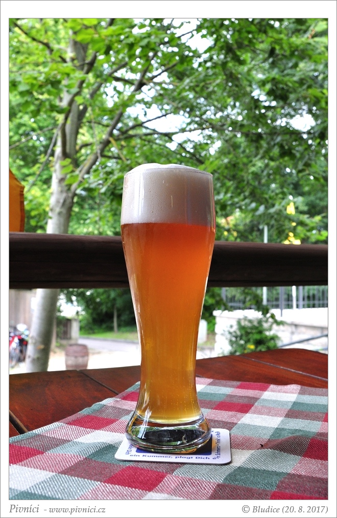 Tmavě zlatá až oranžová barva, středně zakalené, pěkná světlá pěna, dobře drží.Vůně (3 - dobré):