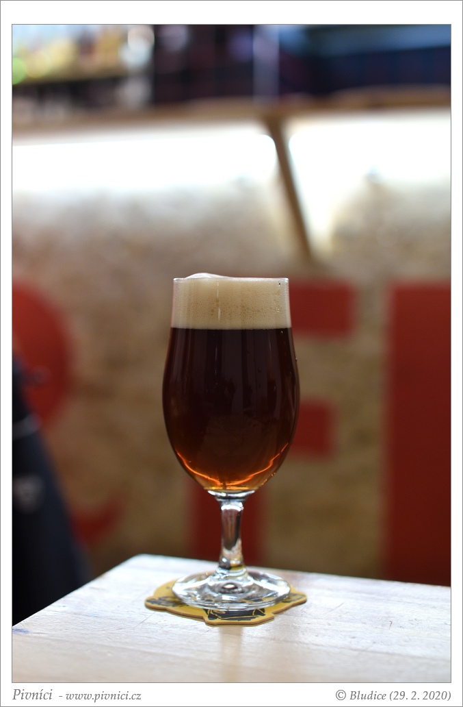Mahagonová barva, lehce zakalené. Pěkná světlá pěna, dobře drží.Vůně (3,5 - velmi dobré):