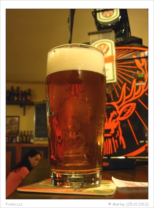 Zlatá barva, čiré, hezká krémová bílá pěna.Vůně (4 - výborné):