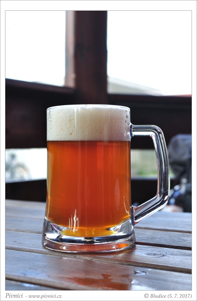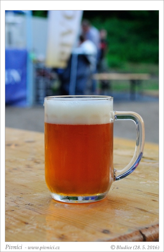 Měděná barva, lehce zakalené, slušná světlá pěna, průměrně drží.Vůně (2 - průměr):