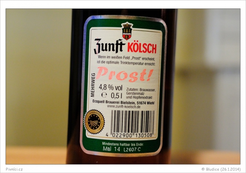 Průměrně pitelný Kölsch.Minimální trvanlivost: 5/2014