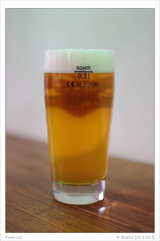 Barva zlatá, lehce zakalené. Pěkná hustá stabilní pěna.Vůně (2 - průměr):
