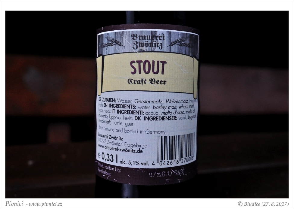 Trochu drsnější stout s lehkou nakyslostí.Minimální trvanlivost: 7. října 2017